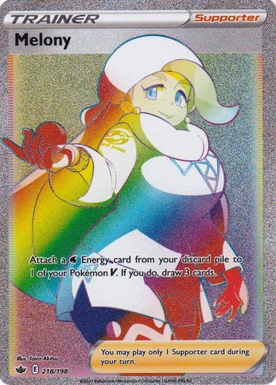 Melony er et Secret Rare pokemon kort fra SWSH Chilling Reign serien og har nummer 218/198.