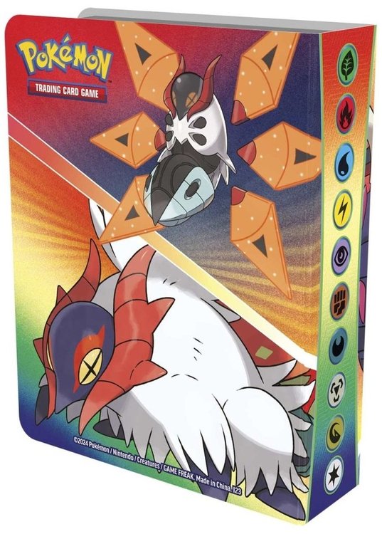 Denne fede mappe er udsmykket med pokemon Great Tusk & Iron Treads og Iron Moth & Slither Wing fra SV04 Paradox Rift. Mappen har 30 sider og kan indeholde 60 pokemonkort. Det er den perfekte løsning, når samlingen skal med til vennerne, i skolen eller på eventyr.