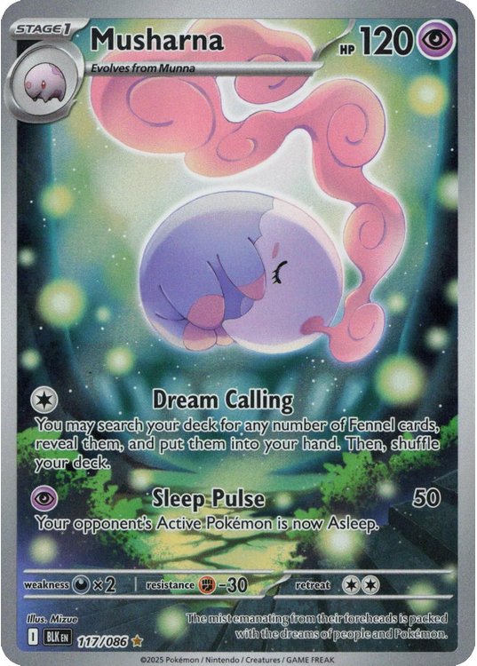 Musharna er et Illustration Rare | Secret Rare pokemon kort fra SV10.5 Black Bolt serien og har nummer 117/086.