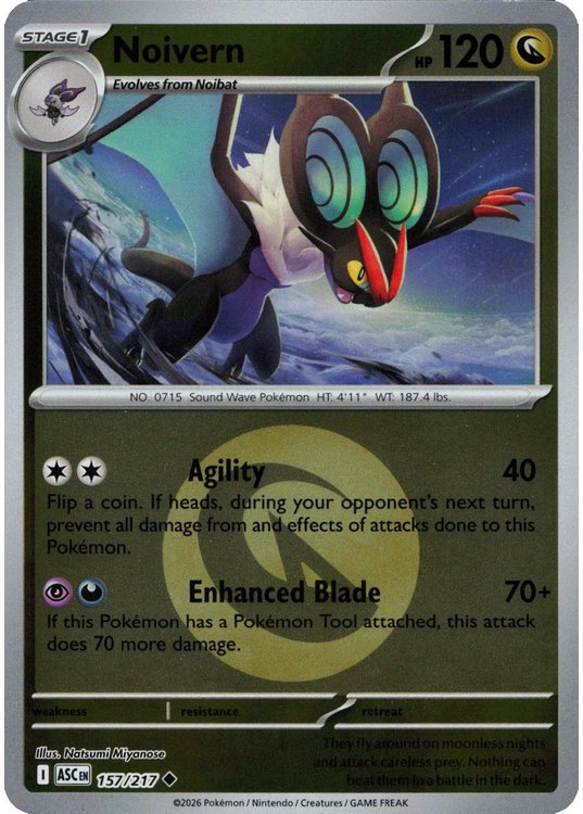 Noivern er et Uncommon pokemon kort fra ME02.5 Ascended Heroes serien og har nummer 157/217.