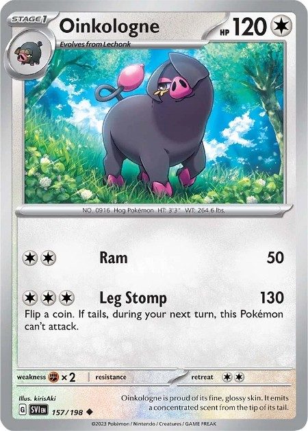 Oinkologne er et Uncommon pokemon kort fra Scarlet & Violet serien og har nummer 157/198.