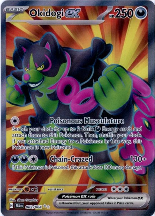 Okidogi ex er et Ultra Rare | Secret Rare ex (SV) pokemon kort fra SV06.5 Shrouded Fable serien og har nummer 82/064.