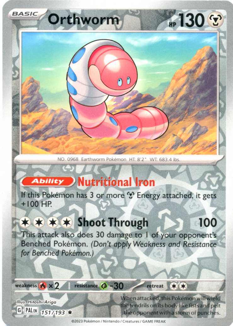 Orthworm er et Rare Holo Holo pokemon kort fra SV02 Paldea Evolved serien og har nummer 151/193.