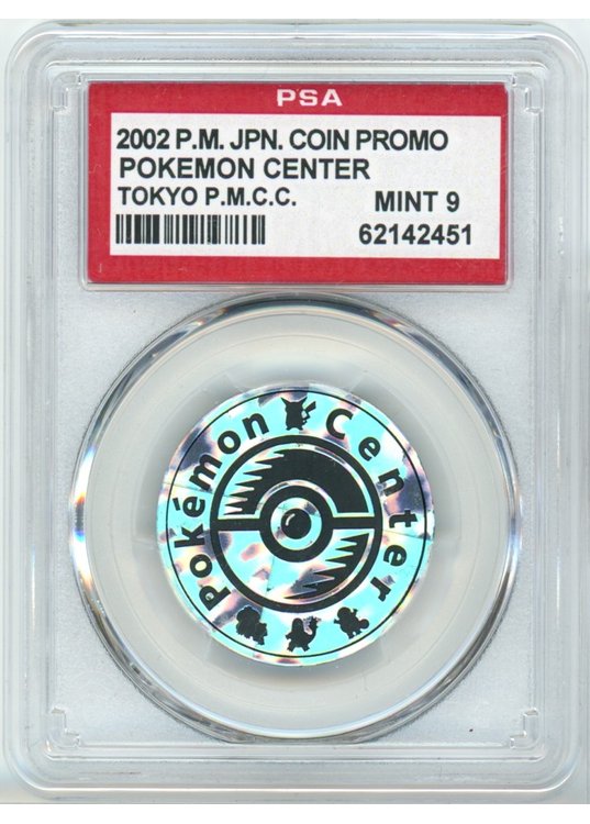 Pokemon Center mønt (Sølv – Splotch Holo) – PSA 9