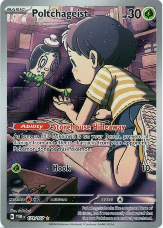 Poltchageist er et Illustration Rare | Secret Rare pokemon kort fra SV06 Twilight Masquerade serien og har nummer 171/167.