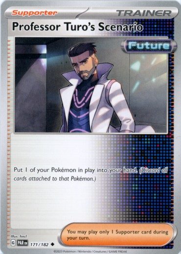Professor Turo’s Scenario er et Uncommon pokemon kort fra SV04 Paradox Rift serien og har nummer 171/182.