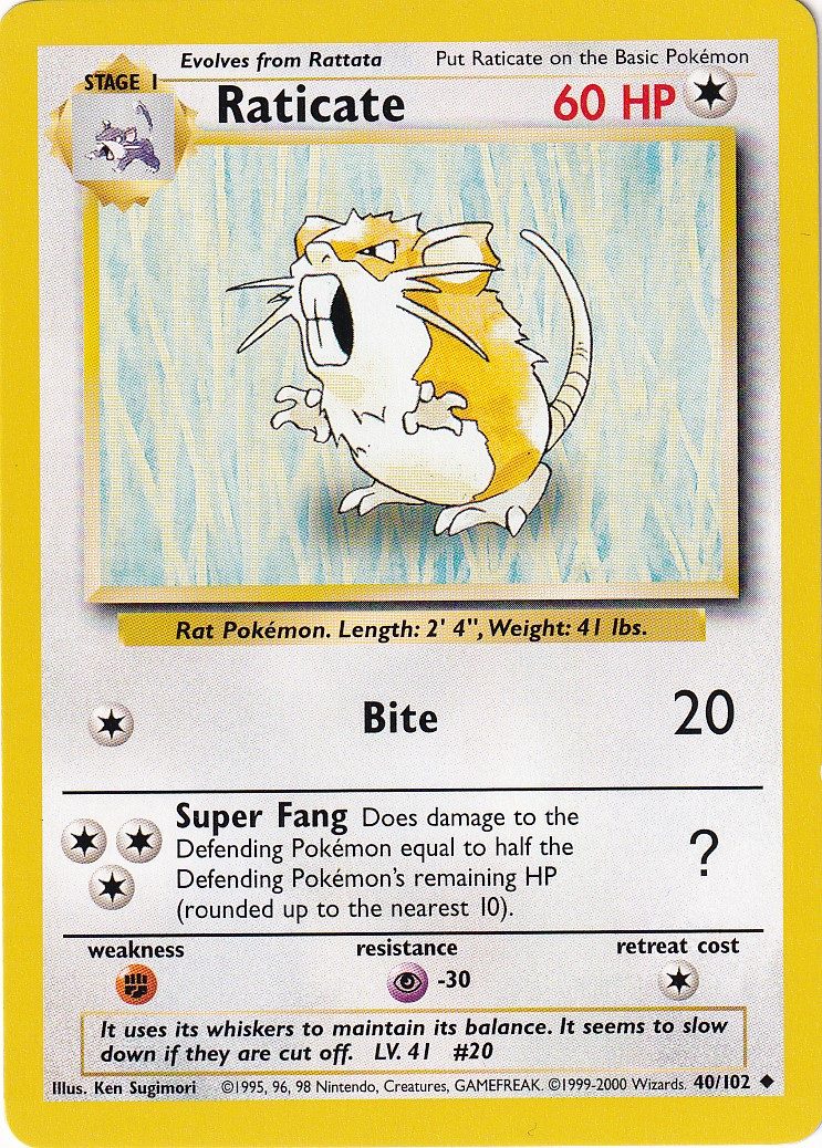 Raticate – 40/102 – 4th Print – Base Set