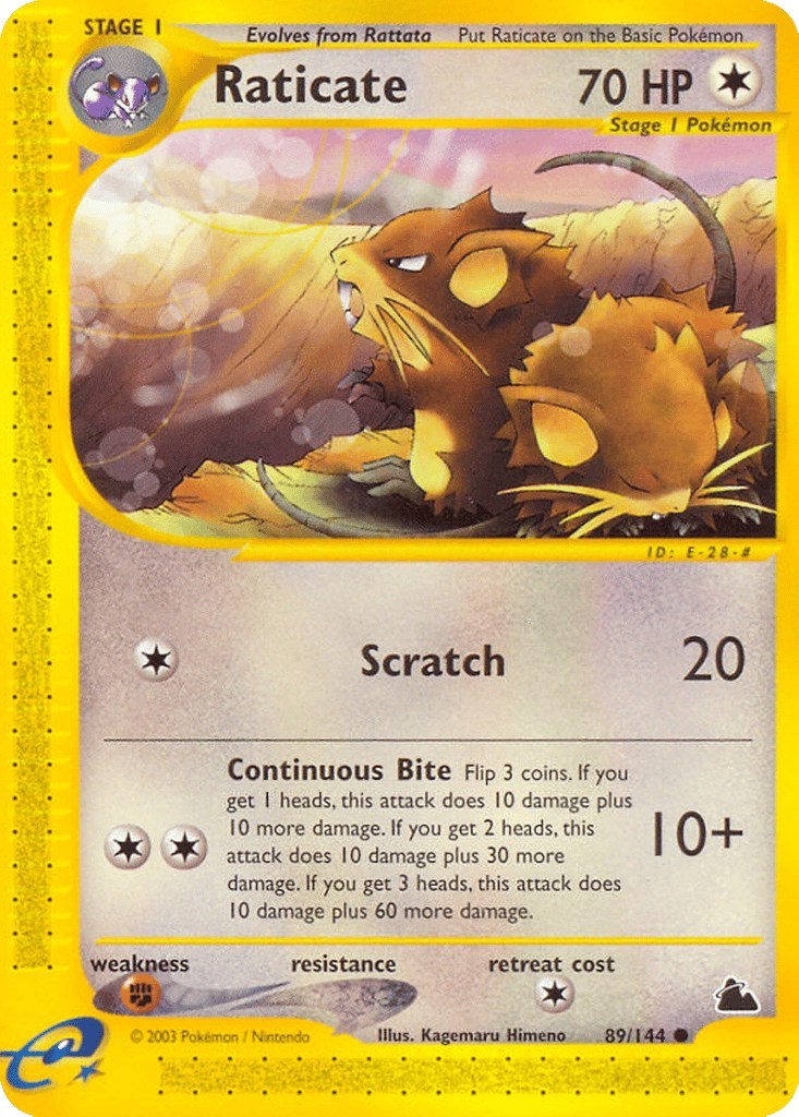 Raticate er et Common pokemon kort fra Skyridge serien og har nummer 89/144.