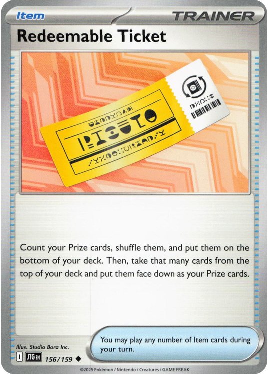 Redeemable Ticket er et Uncommon pokemon kort fra SV09 Journey Together serien og har nummer 156/159.