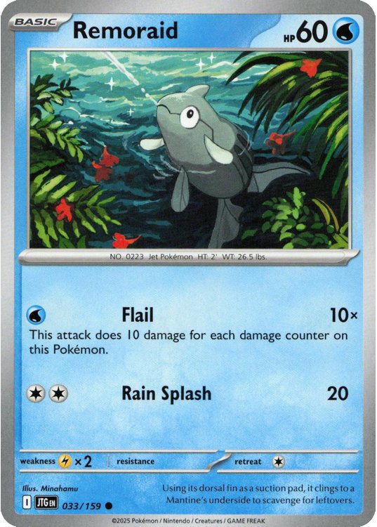 Remoraid er et Common pokemon kort fra SV09 Journey Together serien og har nummer 33/159.