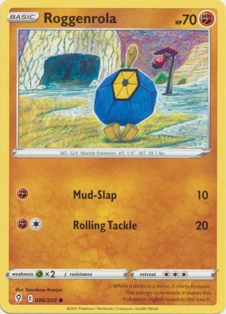 Roggenrola er et Common pokemon kort fra SWSH Evolving Skies serien og har nummer 86/203.