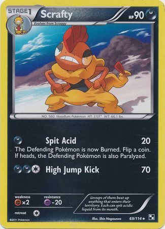 Scrafty er et Rare kort fra Black & White serien og har nummer 69/114.