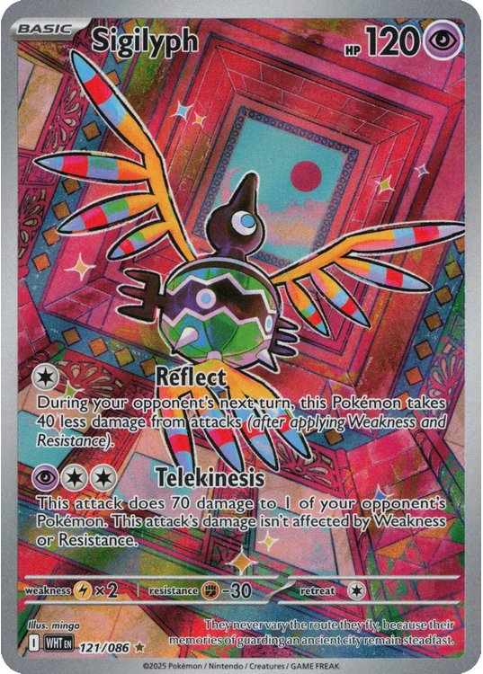 Sigilyph er et Illustration Rare | Secret Rare pokemon kort fra SV10.5 White Flare serien og har nummer 121/086.