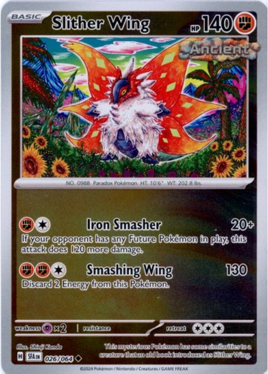 Slither Wing er et Uncommon pokemon kort fra SV06.5 Shrouded Fable serien og har nummer 26/064.