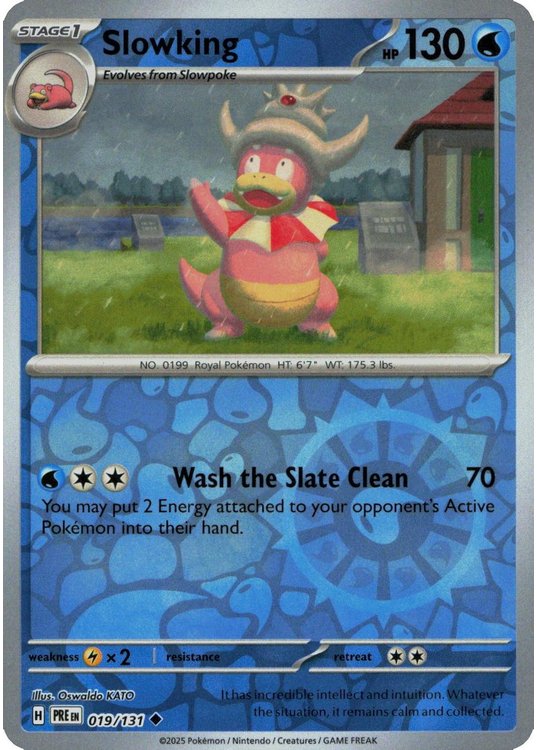 Slowking er et Uncommon pokemon kort fra SV08.5 Prismatic Evolutions serien og har nummer 19/131.