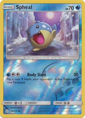 Spheal er et Common kort fra S&M Cosmic Eclipse serien og har nummer 50/236.