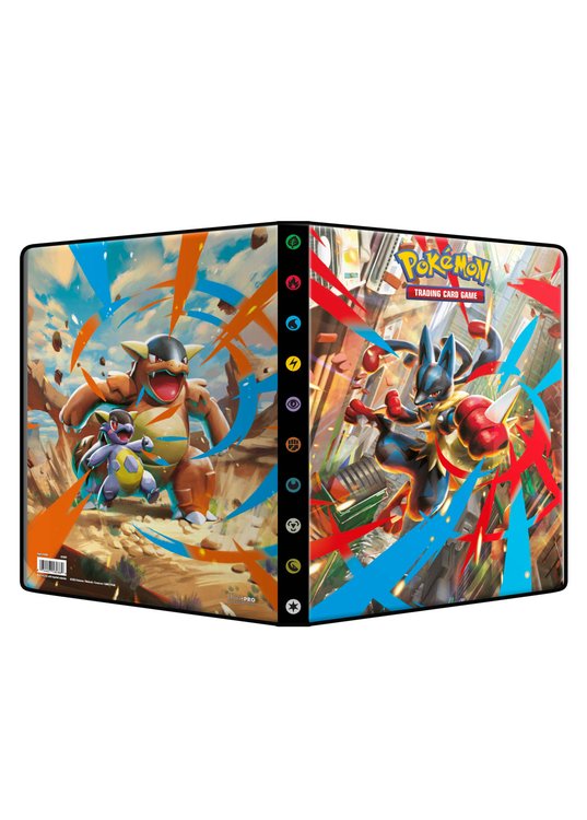 Med denne fede mappe kan du glæde dig til, at vise hele din samling af pokemonkort frem til familie og venner! Ikke nok med at mappen beskytter dine pokemonkort, så er omslaget også fedt udsmykket med Mega Lucario og Mega Kangaskhan fra ME01 Mega Evolution.