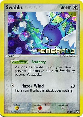 As long as Swablu is on your Bench, prevent all damage done to Swablu by opponent’s attacks.