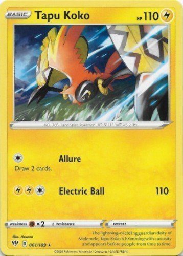 Du køber her en alternativ udgave af et pokemonkort, nemlig Tapu Koko – 061/189 – Non Holo.