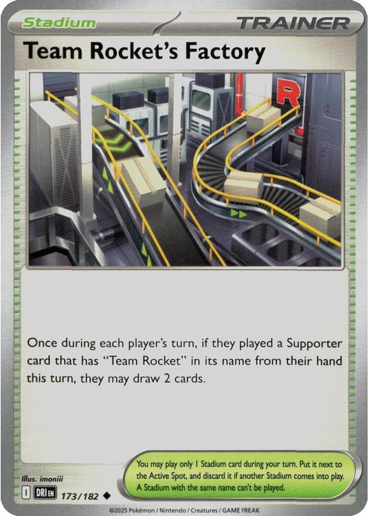 Team Rocket’s Factory er et Uncommon pokemon kort fra SV10 Destined Rivals serien og har nummer 173/182.