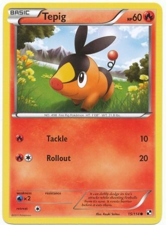 Tepig er et Common kort fra Black & White serien og har nummer 15/114.