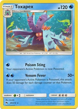 Toxapex er et Rare kort fra S&M Lost Thunder serien og har nummer 69/214.