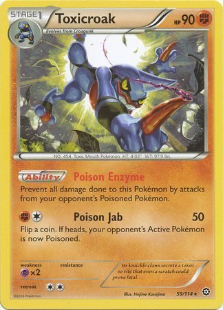 Toxicroak er et Rare kort fra XY Steam Siege serien og har nummer 59/114.