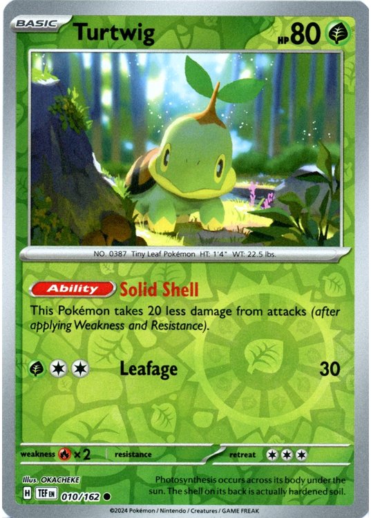 Turtwig er et Common pokemon kort fra SV05 Temporal Forces serien og har nummer 10/162.