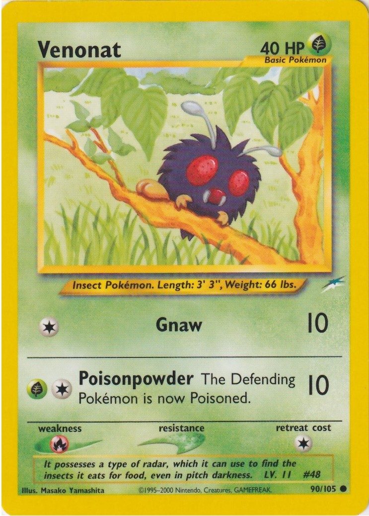Venonat er et Common pokemon kort fra Neo Destiny serien og har nummer 90/105.