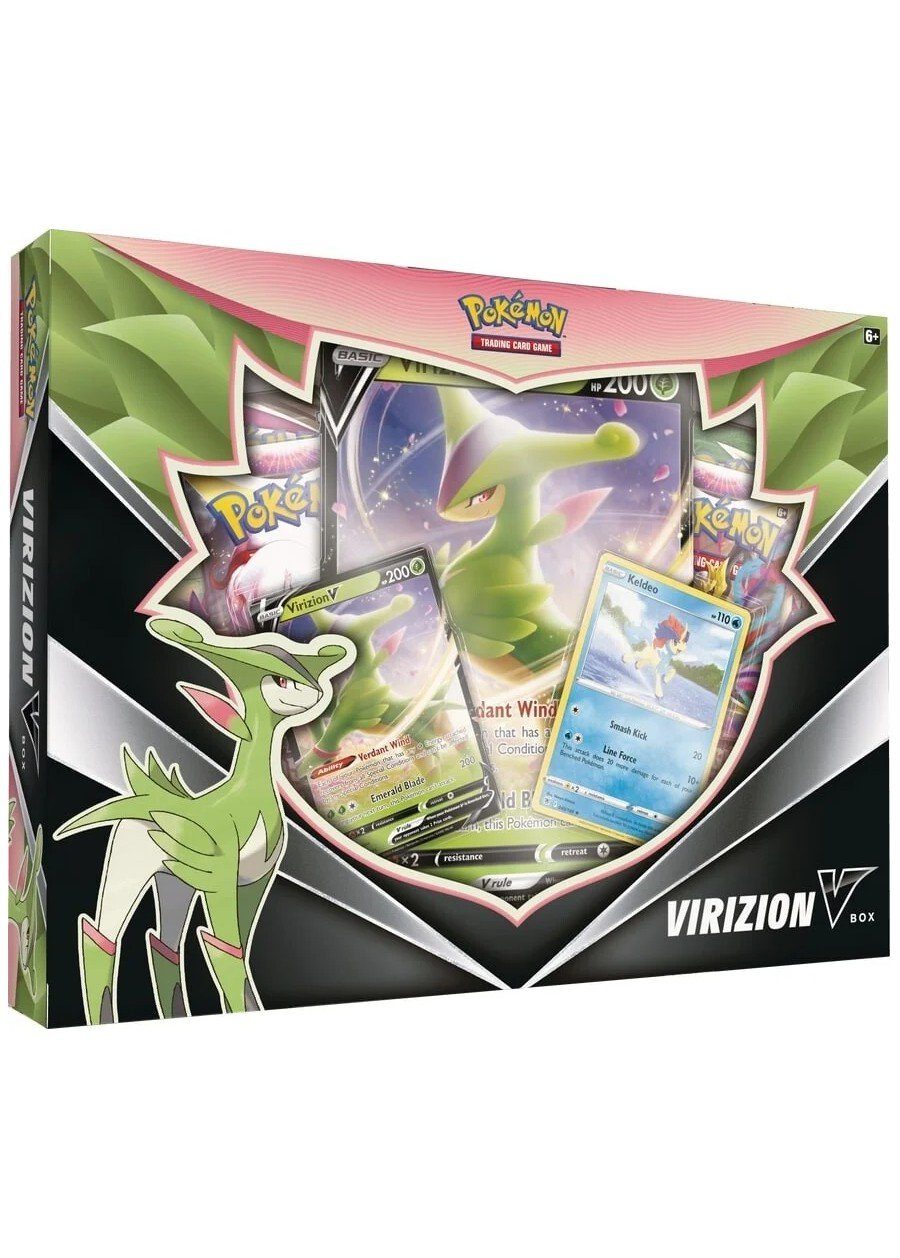 Go green and bestow justice with the legendary power of Virizion V! Tend to your allies with the Verdant Wind Ability, then go on the offensive to deliver powerful strikes with the Emerald Blade attack! In this box, you’ll find playable and oversize versions of Virizion V, plus a bonus playable card featuring Keldeo. You’ll also get a handful of Pokémon TCG booster packs to give your deck a boost before your next match.