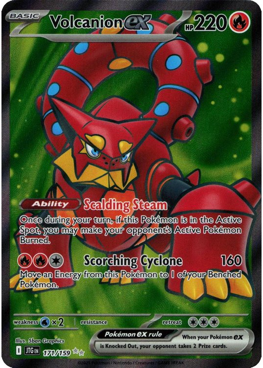Volcanion ex er et Ultra Rare | Secret Rare ex (SV) pokemon kort fra SV09 Journey Together serien og har nummer 171/159.