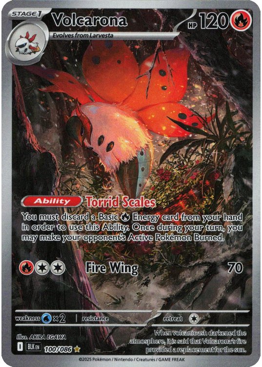 Volcarona er et Illustration Rare | Secret Rare pokemon kort fra SV10.5 Black Bolt serien og har nummer 100/086.