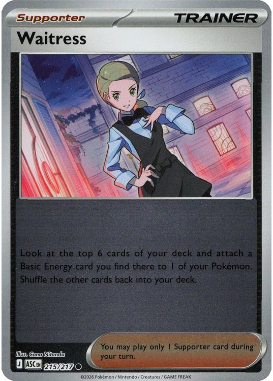 Waitress er et Common pokemon kort fra ME02.5 Ascended Heroes serien og har nummer 215/217.